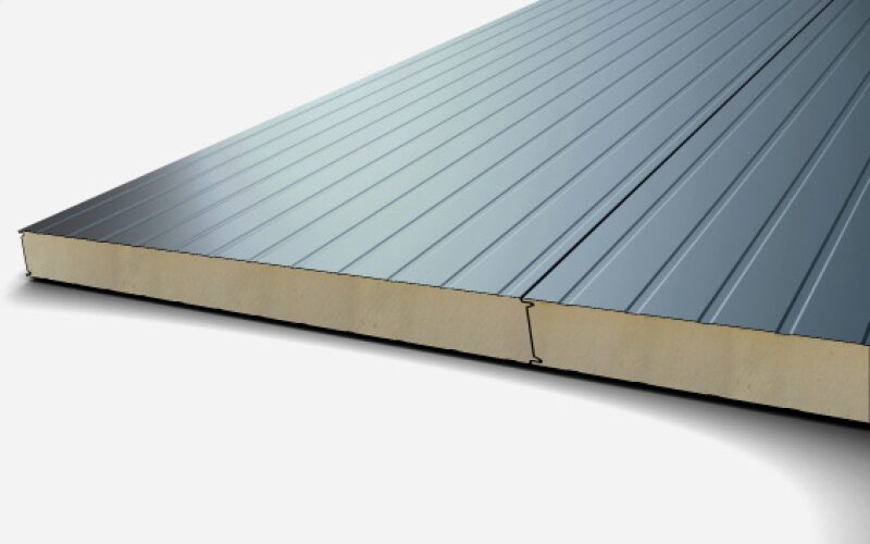 - Кровельные — горизонтальная или наклонная установка. Наружная обшивка имеет высокий профиль (трапеция 40–80 мм) для обеспечения водоотвода. Внутренняя — плоская или микропрофилированная. Ширина — 1000 мм, длина — до 16 м.